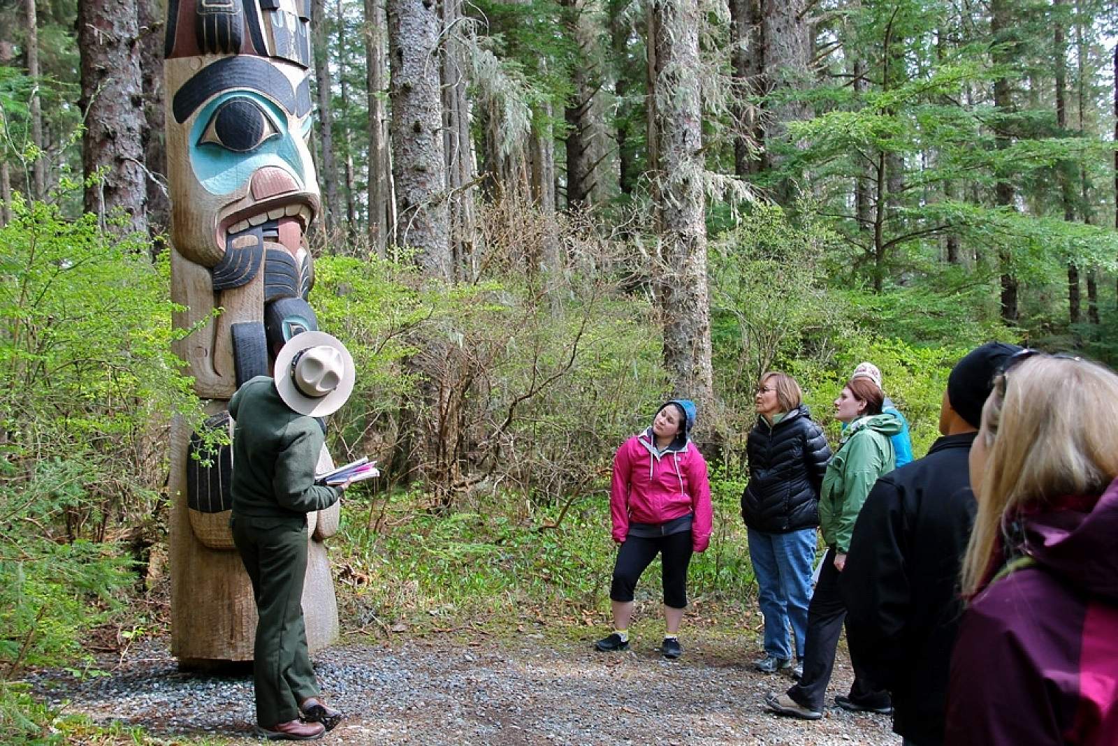Your first stop should be the Visitor Center, where you’ll find maps, a knowledgeable staff, a short film on the park’s history, as well as Native carvers and Southeast Alaska Native regalia.