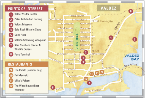 While Valdez is accessible by water, most people get here by making it a stop on a popular and amazingly scenic road trip from Anchorage—a drive that’s considered one of the most beautiful in Alaska.